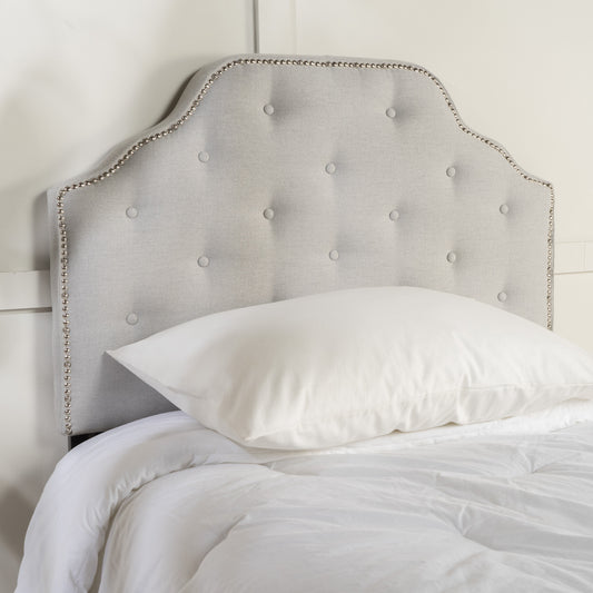 Hecha Tufted Light Gray Fabric Full/Queen Headboard with Nailhead Accents
