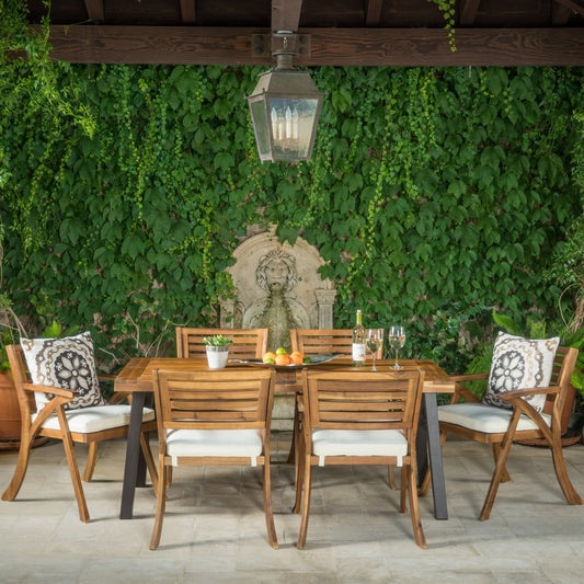 DeSoto 7 Piece Teak Finish Acacia Wood Patio Dining Set