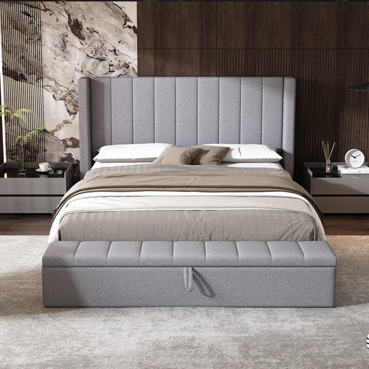 Cassander Queen Size Upholstered Platform Bed with Storage with Headboard