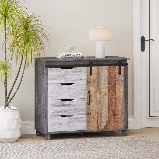 Delaney Antique Multicolor Distressed Wood Storage Cabinet