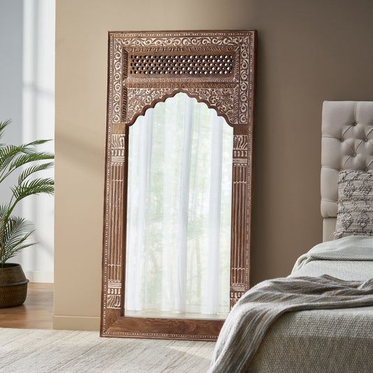Wyola Traditional Handcrafted Mango Wood Carved Full Length Standing Mirror