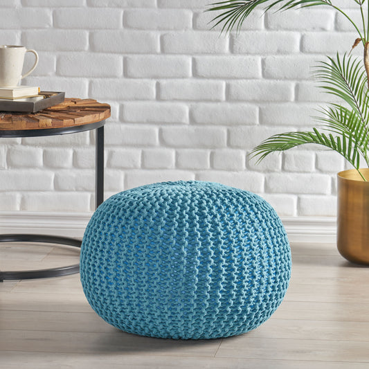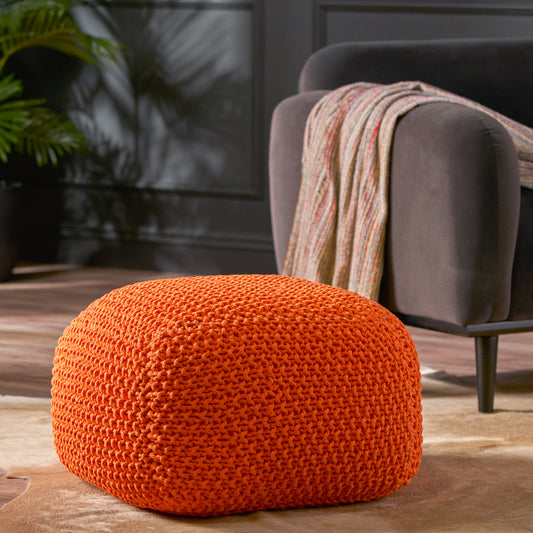 Teresa Knitted Cotton Square Pouf, Light Grey