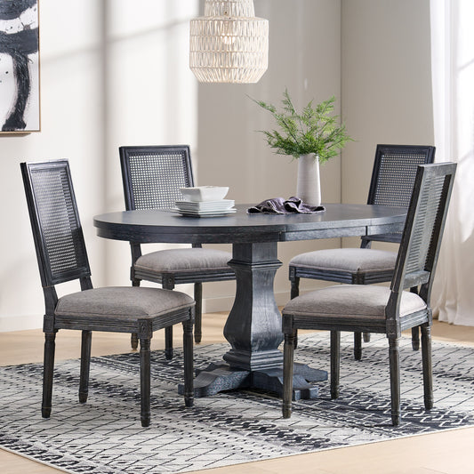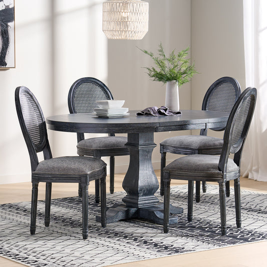 Lintz French Country Wood and Cane 5-Piece Expandable Oval Dining Set