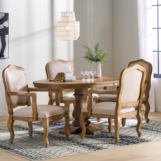 Absaroka French Country Fabric Upholstered Wood 5 Piece Circular Dining Set