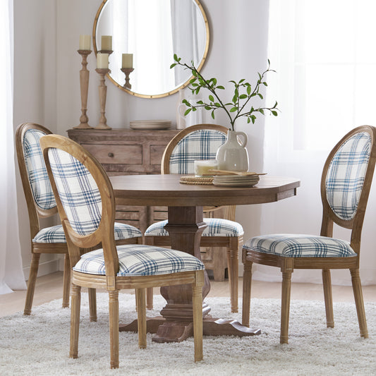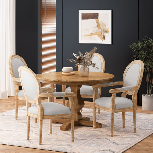 Bryan French Country Fabric Upholstered Wood 5 Piece Circular Dining Set