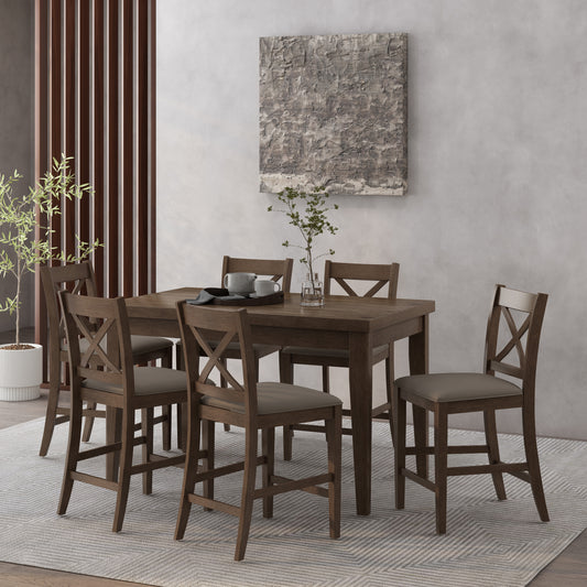 Boughton Farmhouse Wood Counter Height 7 Piece Dining Set