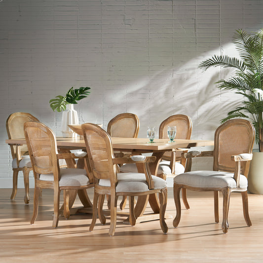 Biorn French Country Wood and Cane 7-Piece Expandable Dining Set