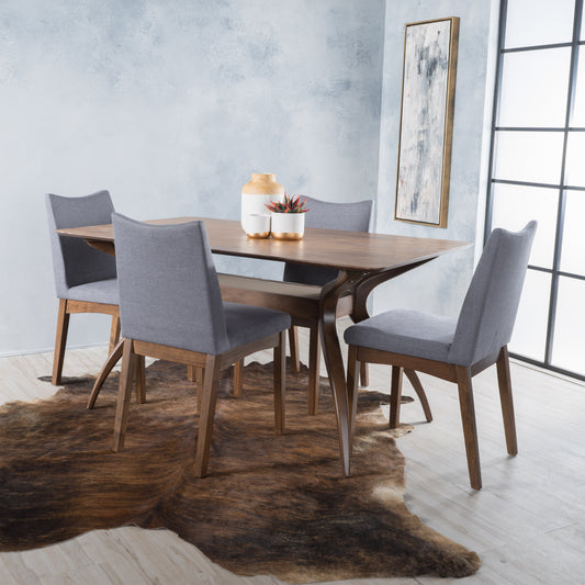 Issaic Mid-Century Modern 5-Piece Fabric Upholstered Dining Set w/ Wood Frame
