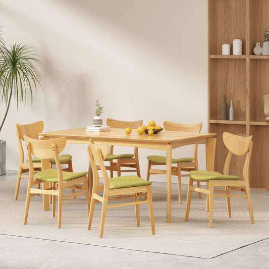 Geisler Wood and Fabric 7 Piece Dining Set, Natural Oak, Green Tea