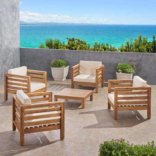 Emma Outdoor 6 Seater Acacia Wood Sectional Sofa and Club Chair Set