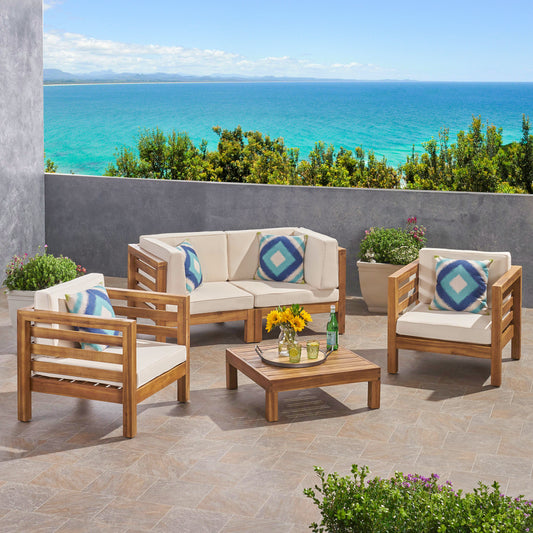 Emma Outdoor 6 Seater Acacia Wood Sofa Chat Set