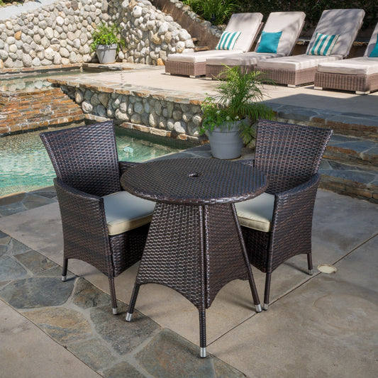 Perry Outdoor 3pc Multibrown Wicker Bistro Set