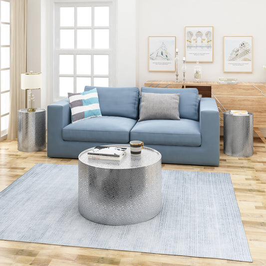 Tuttle Modern Handcrafted Aluminum Drum Coffee Table, Nickel