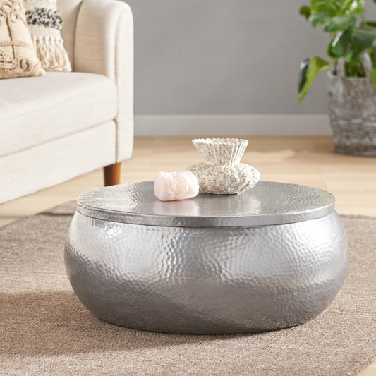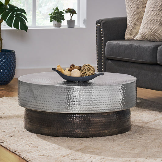 Brenizer Modern Handcrafted Hammered Aluminum Two Toned Coffee Table, Antique Pewter