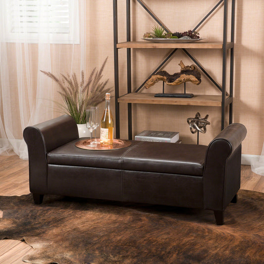Danbury Contemporary Upholstered Storage Ottoman Bench with Rolled Arms