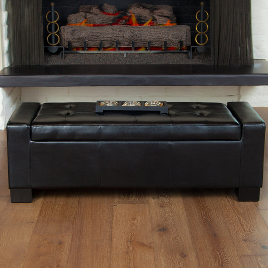 Rothwell Contemporary Tufted Bonded Leather Storage Ottoman Bench