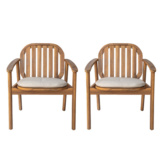 Demorilos Acacia Wood Outdoor Dining Chairs 2-Pack with Waterproof Cushions