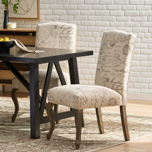 Crown Back French Script Beige Fabric Dining Chairs (Set of 2)
