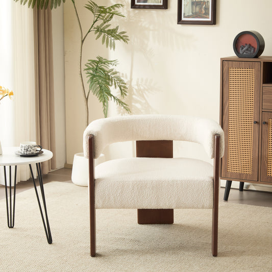 Noah Upholstered Boucle Accent Arm Chair, Rubberwood, Beige+walnut