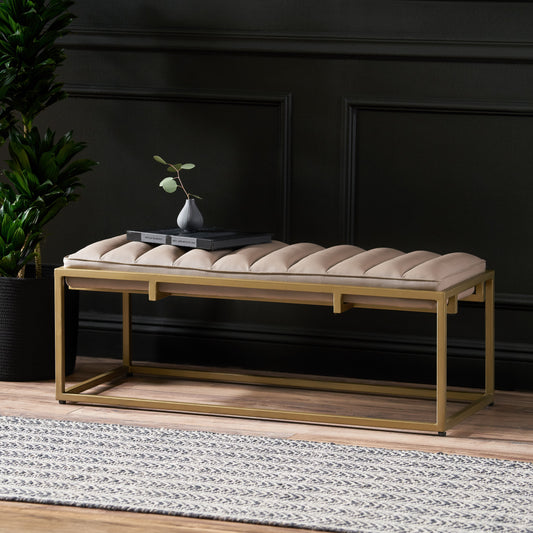 Jill Contemporary Handmade Channel Stitch Ottoman Bench, Dark Cream and Matte Gold