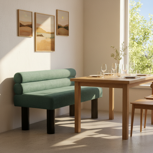 Thorne Upholstered Dining Bench with Backrest, Fabric Entryway Ottoman, Rubber Wood Legs, 300lbs Capacity