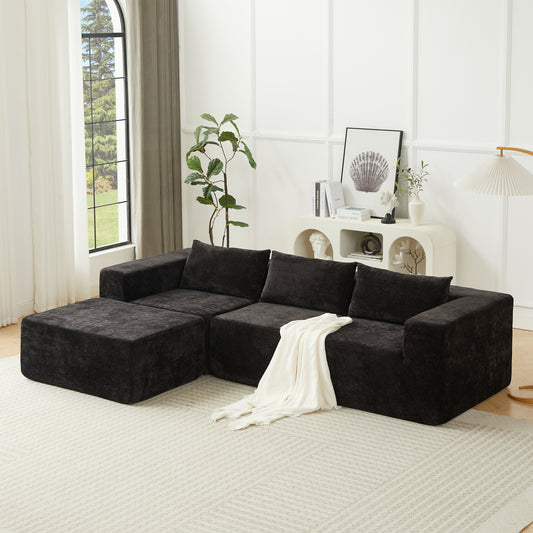 Fintin 107" Corduroy Modular Sectional Sofa with Ottoman, Zero Assembly Cloud Couch, Free Combination Design