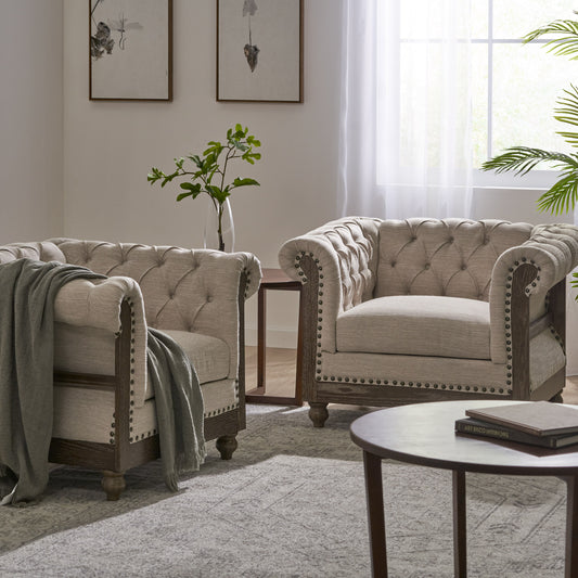 Alejandro Chesterfield Tufted Fabric Club Chairs with Nailhead Trim, Set of 2