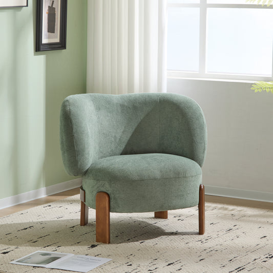Mossly Modern Accent Chair with Round Back & Wooden Legs - Mid-Century Inspired Lounge Chair for Living Room, Bedroom