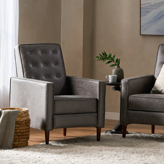 Macedonia Mid Century Modern Tufted Back Fabric Recliner