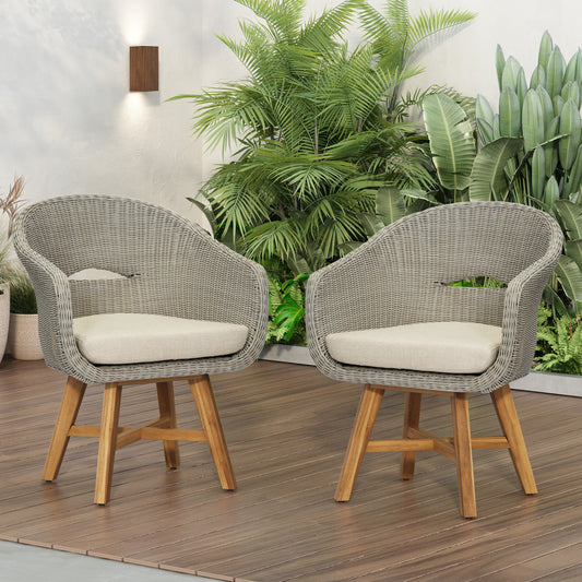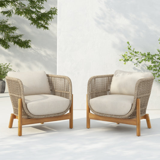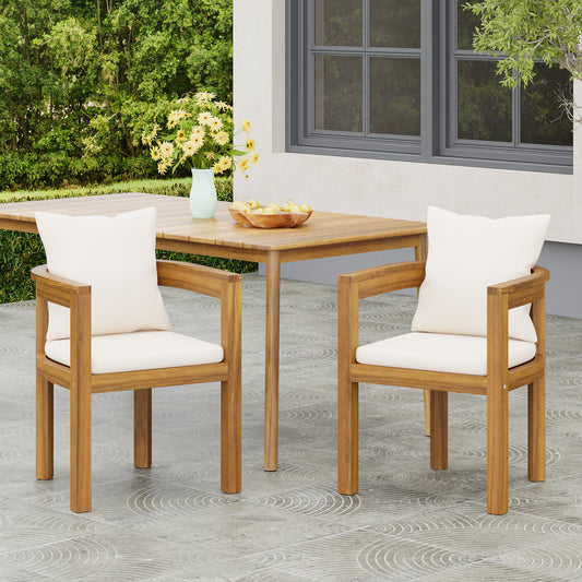 Abaca Outdoor Acacia Wood Dining Chair with Cushion, Set of 2