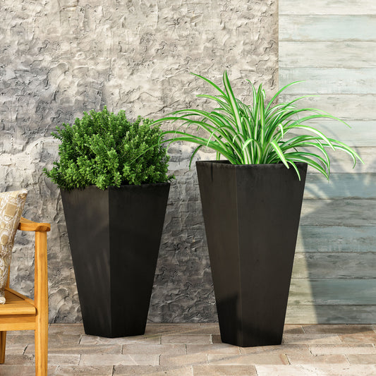 Greg Outdoor Small and Large Cast Stone Tapered Planter Set, Antique White