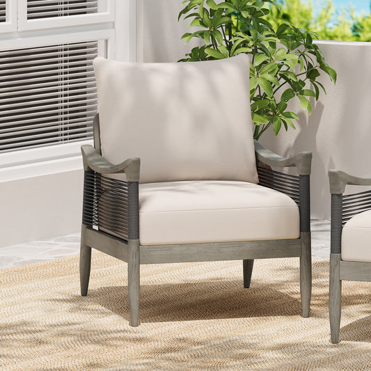 Fernver Ourdoor Woven Rope Patio Acacia Wood Club Chair, With Cushion