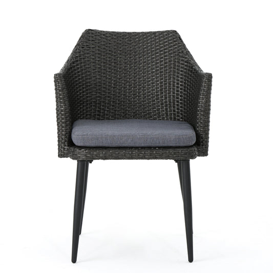 Hilary Outdoor Wicker Dining Chairs with Water Resistant Cushions (Set of 2)