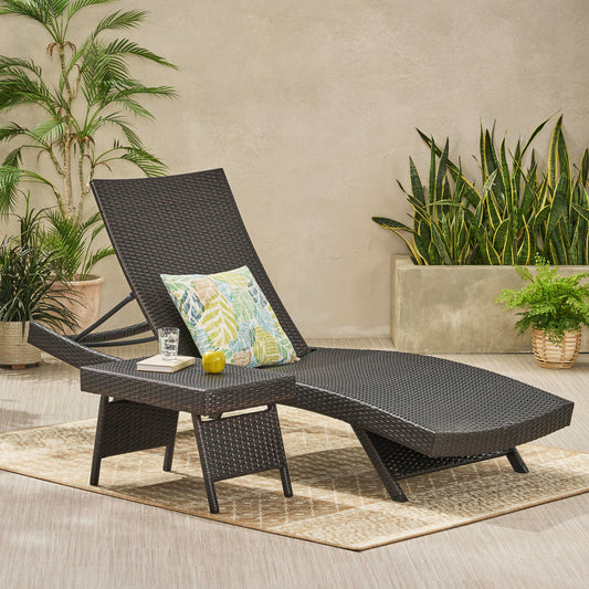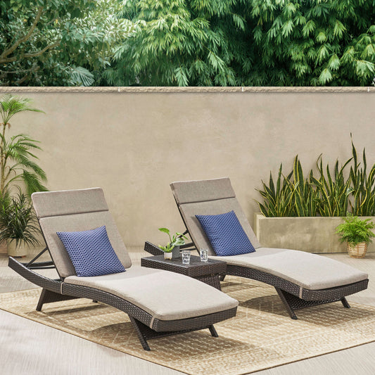 Lakeport Outdoor 3 Piece Mutlibrown Wicker Chaise Lounge Set with Table