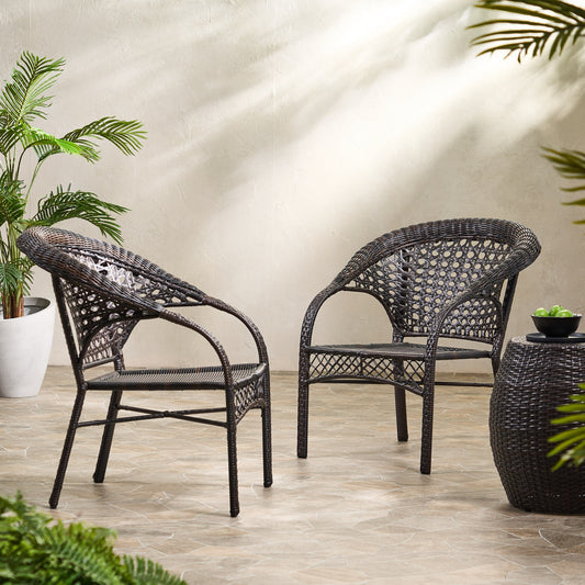 Newton Outdoor 3 Piece Multi-Brown Wicker Chat Set with Stacking Chairs