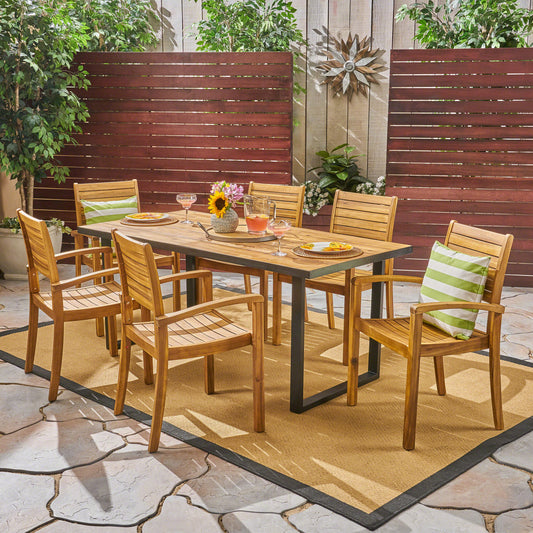 Alderson Outdoor 6-Seater Rectangular Acacia Wood Dining Set, Teak and Black