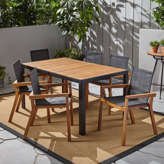 Aymee Outdoor 6-Seater Rectangular Acacia Wood and Mesh Dining Set