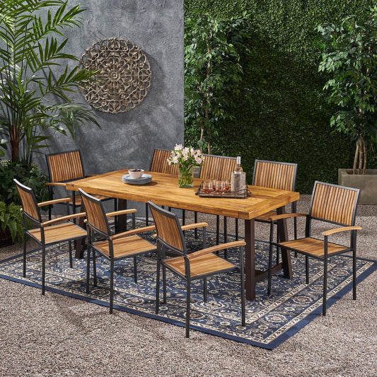 Estelle Outdoor 8 Seater Expandable Acacia Wood Dining Set