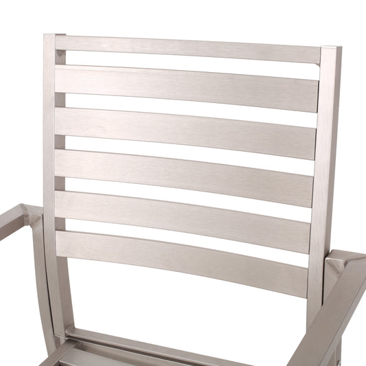 Cherie Outdoor Modern 6 Seater Aluminum Dining Set with Faux Wood Table Top