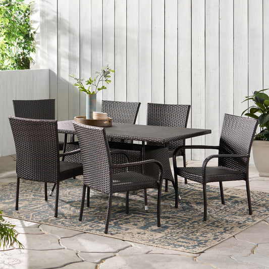 Kory Outdoor 7-Piece Multi-Brown Wicker Dining Set with Umbrella Hole