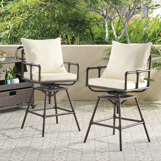 Varick Outdoor Adjustable Pipe Barstools (Set of 2), Black Copper and Beige