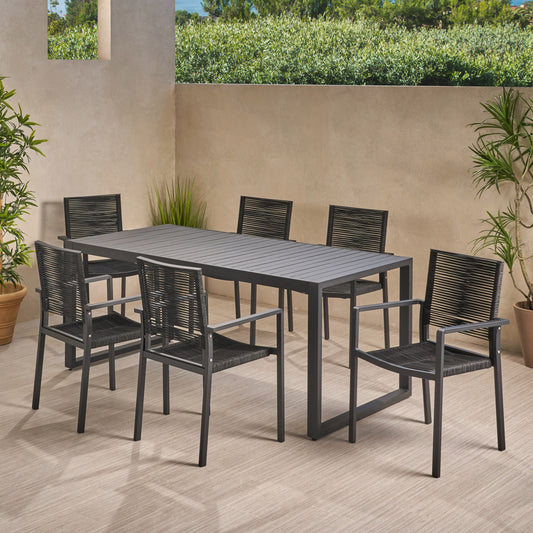 Alania Outdoor 7 Piece Aluminum Dining Set with Wicker Dining Chairs