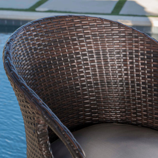Dorchester Outdoor 3 Pc brown Wicker Bistro Set w/Beige Water Resistant Cushion