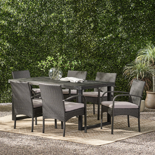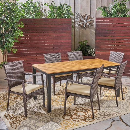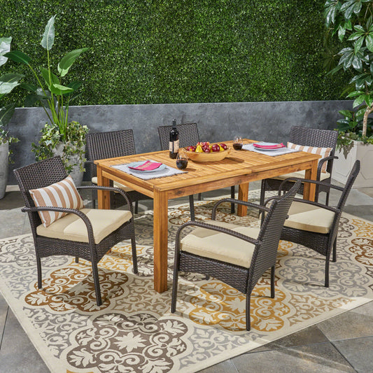 Elis Outdoor 7 Piece Wood and Wicker Expandable Dining Set