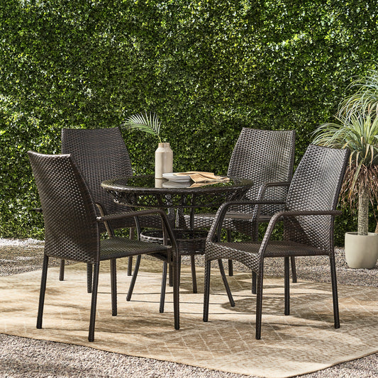 Michael Outdoor Multibrown Wicker 5pc Dining Set