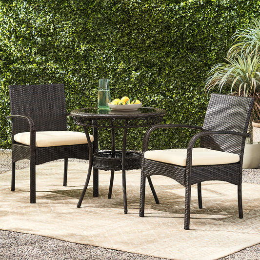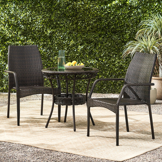 Michael Outdoor 3-Piece Multi-Brown Wicker Bistro Set with Tempered Glass Top