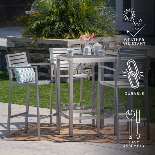 Patricia Outdoor 5 Piece Multi-brown Wicker Round Bar Table Set