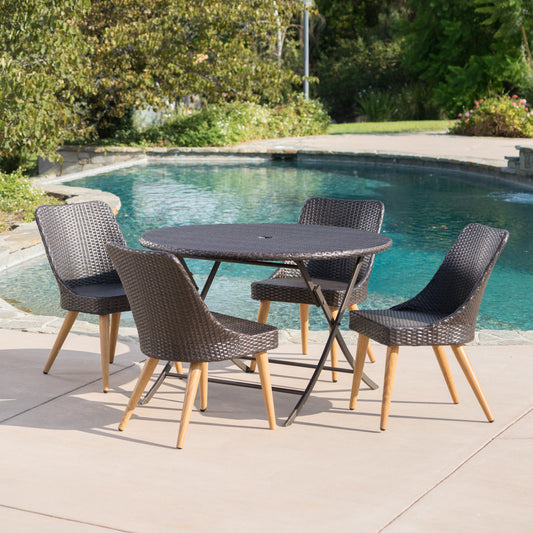 Orwel Outdoor 5 Piece Wood and Wicker Dining Set, Gray and Gray