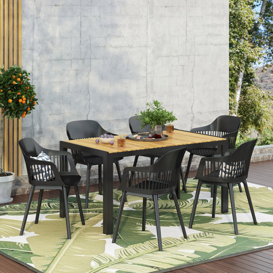 Palmilla Outdoor Wood and Resin 7 Piece Dining Set, Black and Teak