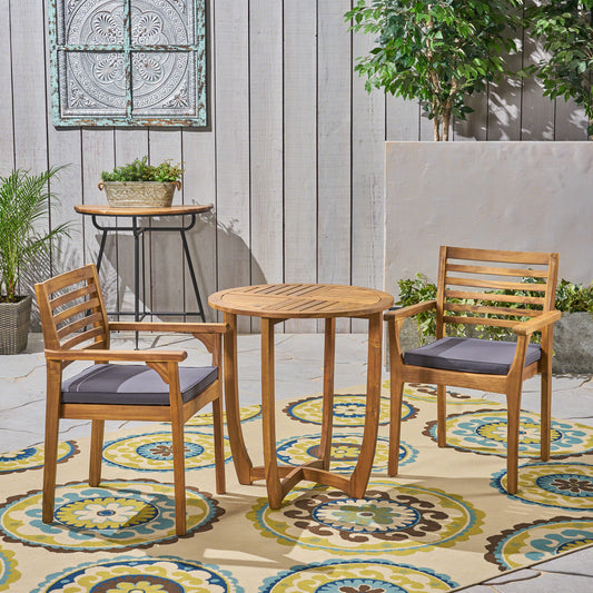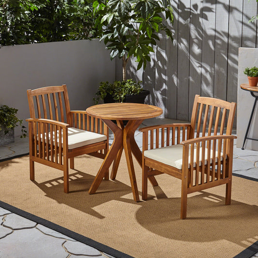 Phoenix Outdoor Acacia 2-Seater Bistro Set with Cushions and 28" Round Table with Straight Legs